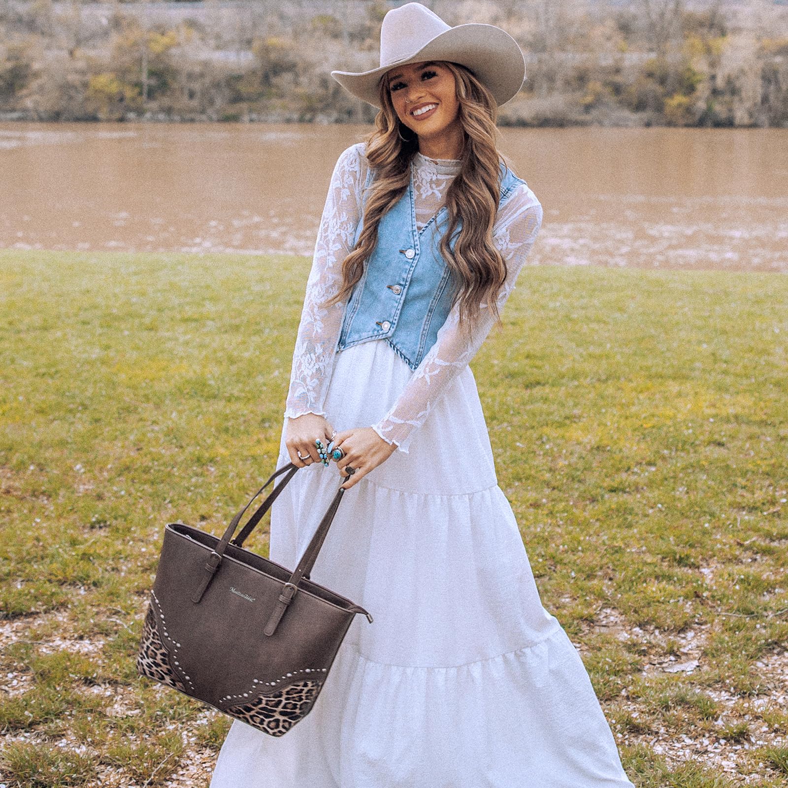 - Beautiful Design:Jungle cat print trim tote, Accented with cheetah pattern panels, western shaped cutouts, and a row of antique silver studs. Adjustable straps help fit to every comfort level. Modern and on trend.
