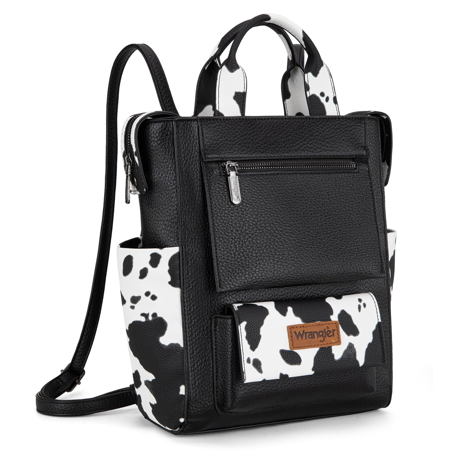 Montana West Wrangler Cow Print Backpack Purse for Women Vegan Leather Ladies Convertible Backpack Stylish Anti Theft Backpack with Adjustable Strap