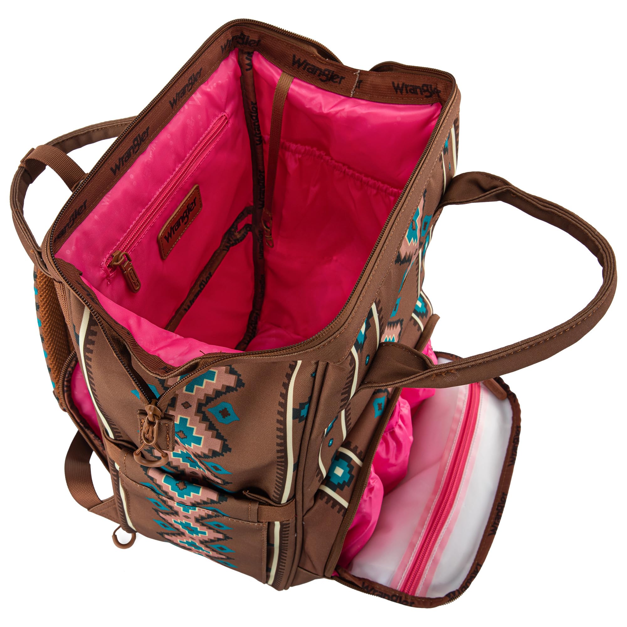 - Southwest Pattern: Embrace the vibrant and gorgeous Aztec pattern of the Wrangler diaper bag. The rugged yet chic Wrangler aesthetic adds a trendy touch, making parenting more convenient and stylish