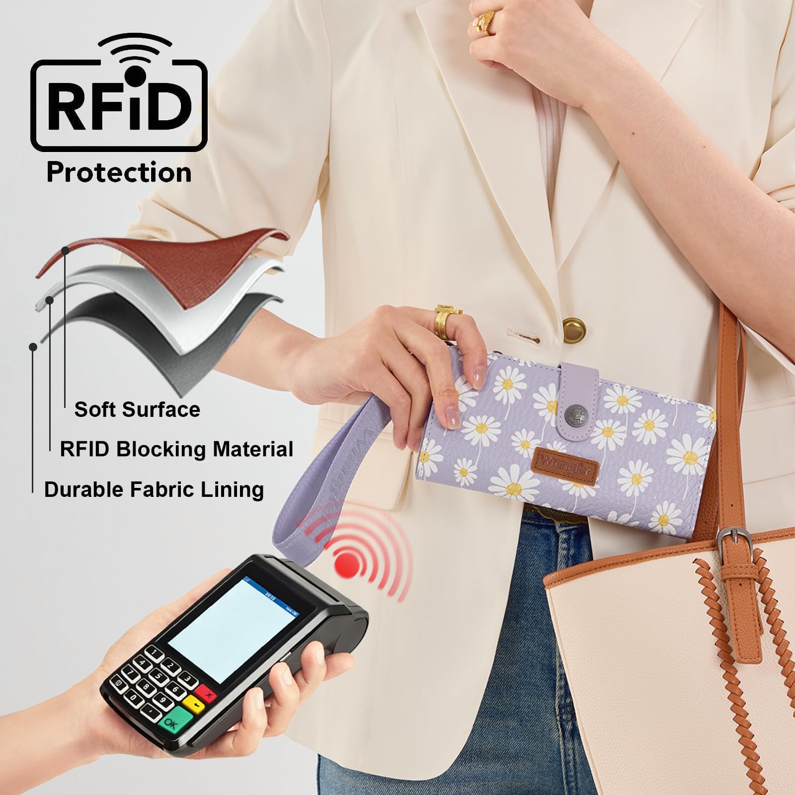 Montana West X Wrangler Wristlet Wallet Purple Daisy Floral Wallet, Card Cases & Money Organizers Large Capacity Bifold Wallets Ladies Female Travel Clutch Wallets with ID Window